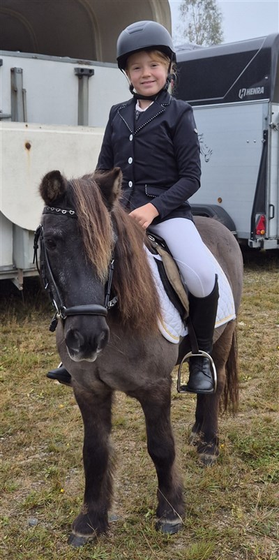 Maja Ekholm som tävlade med ponnyn Ulrika Emm placerade sig på första plats i